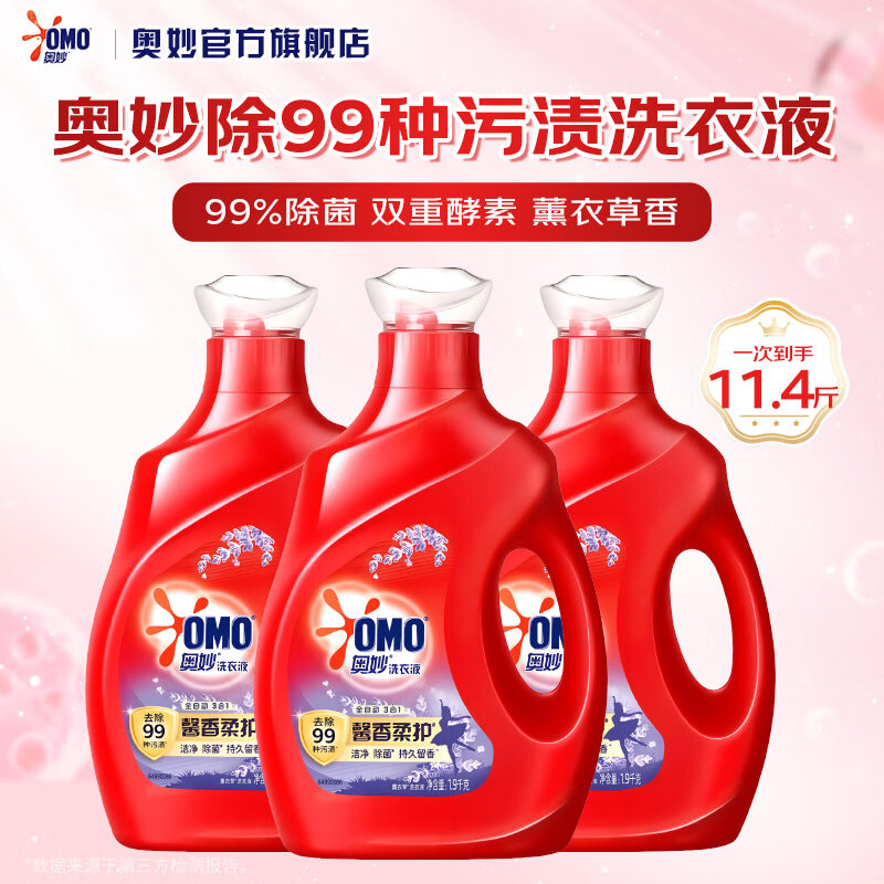 旗舰店奥妙洗衣液酵素全自动三合一薰衣草馨香洗衣液持久留香 99%除菌补充装 薰衣草香11.4斤