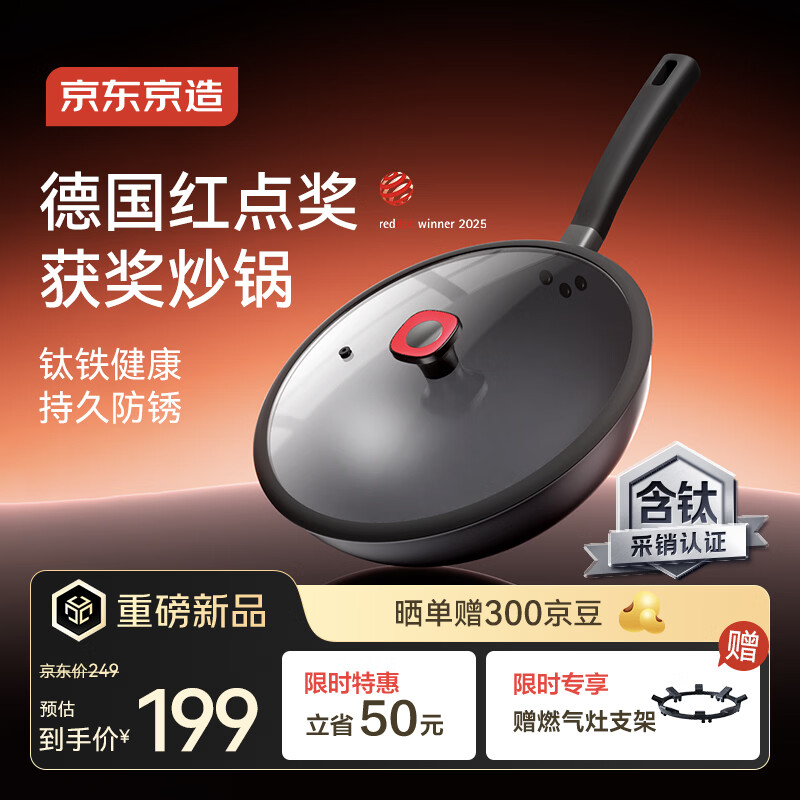 自营京东京造 鸿运当头钛铁炒锅Pro 铁锅炒菜燃气灶专用圆底【有钛0涂层】32cm