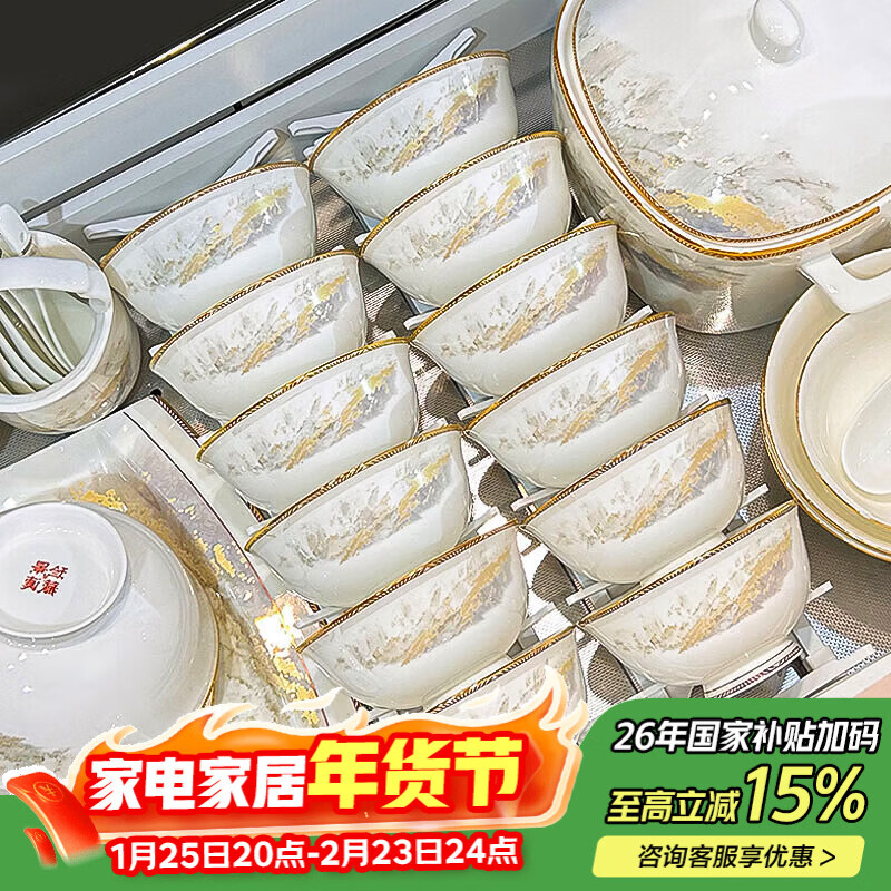 自营洛威景德镇家用新款碗碟套装高颜值陶瓷餐具套装碗盘筷乔迁新居