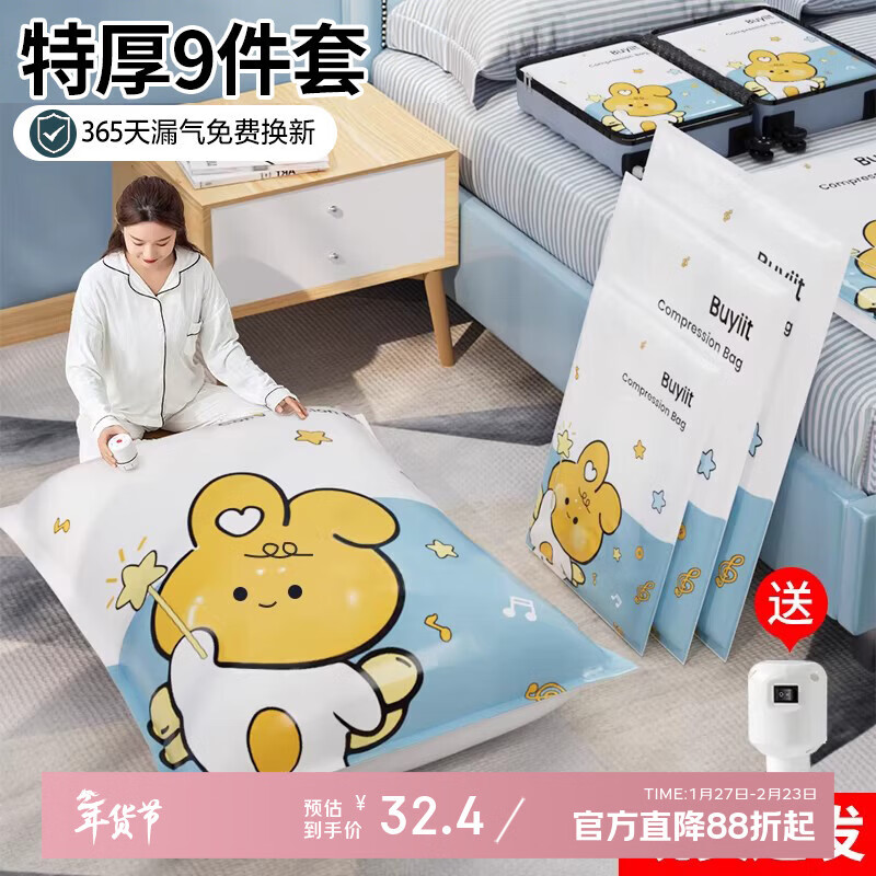 旗舰店百易特真空压缩收纳袋子衣服衣物棉被子羽绒服抽气密封神器 【9件套】3超大3特大2大+电泵 秋意