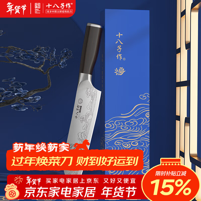 自营十八子作三德刀刻纹图案刀具 飞霞流年菜刀多用刀SL2369-C【精美礼盒装】