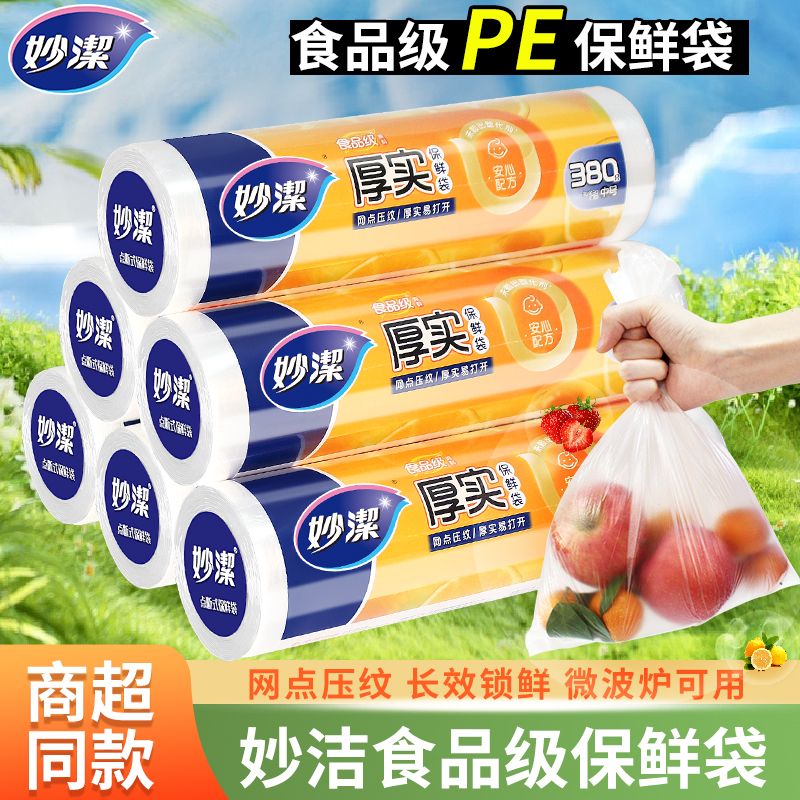 妙洁保鲜袋食品级点断式网点一次性塑料袋子加厚实耐高低温家用