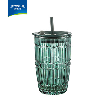 旗舰店乐唯诗(NERVISHI)玻璃吸管杯墨绿原色加厚几何肌理高颜值饮料果汁晶钻牛奶咖啡杯子 箭纹吸管杯【墨绿原色】 440ml 1只