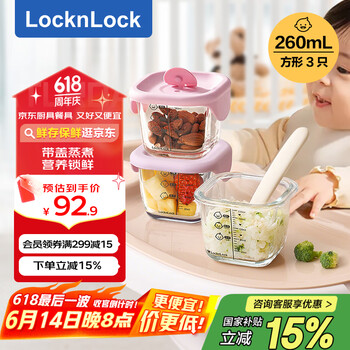 自营乐扣乐扣(locknlock)【厨具618】玻璃辅食盒宝宝辅食碗婴儿饭盒套装LLG513V_260ml*3