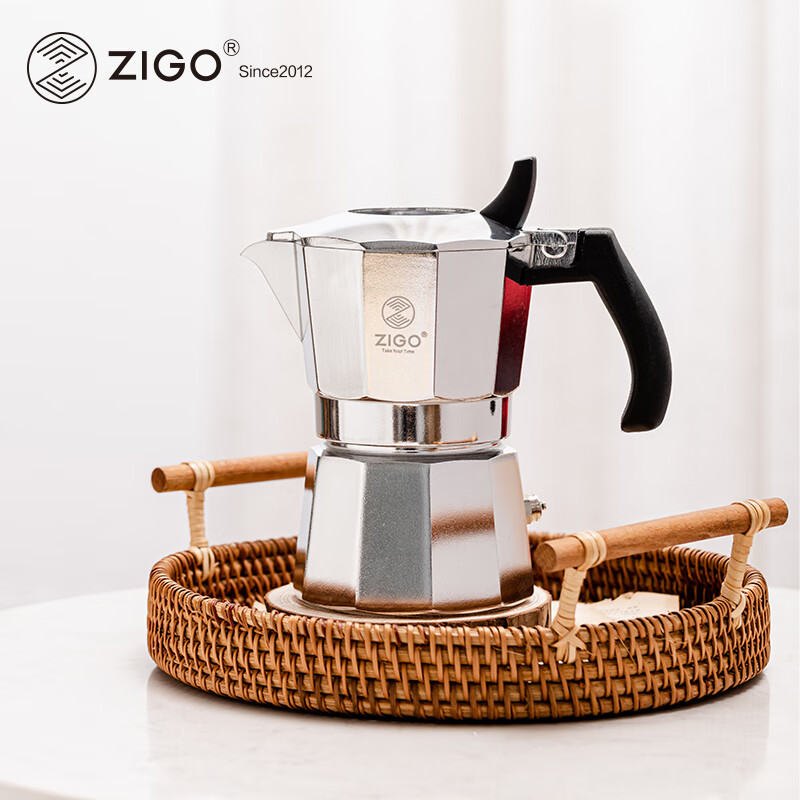 自营Zigo双阀摩卡壶意式浓缩手冲咖啡壶家用户外【国补】2杯份银色