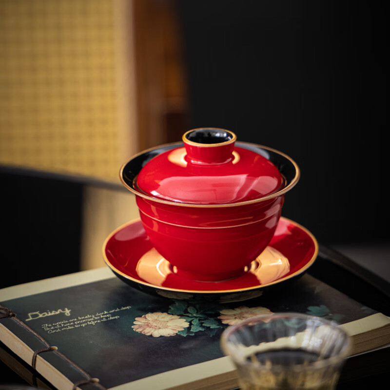 旗舰店景盏景德镇工艺可悬停旋转盖碗故宫红泡茶不烫手茶具功夫碗三才带盖陶 可悬停故宫红三才盖碗