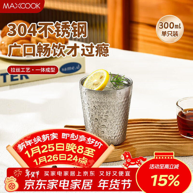 自营美厨(MAXCOOK)304不锈钢水杯冷饮杯子 双层锤纹杯口杯咖啡果汁杯300ml MCB4799