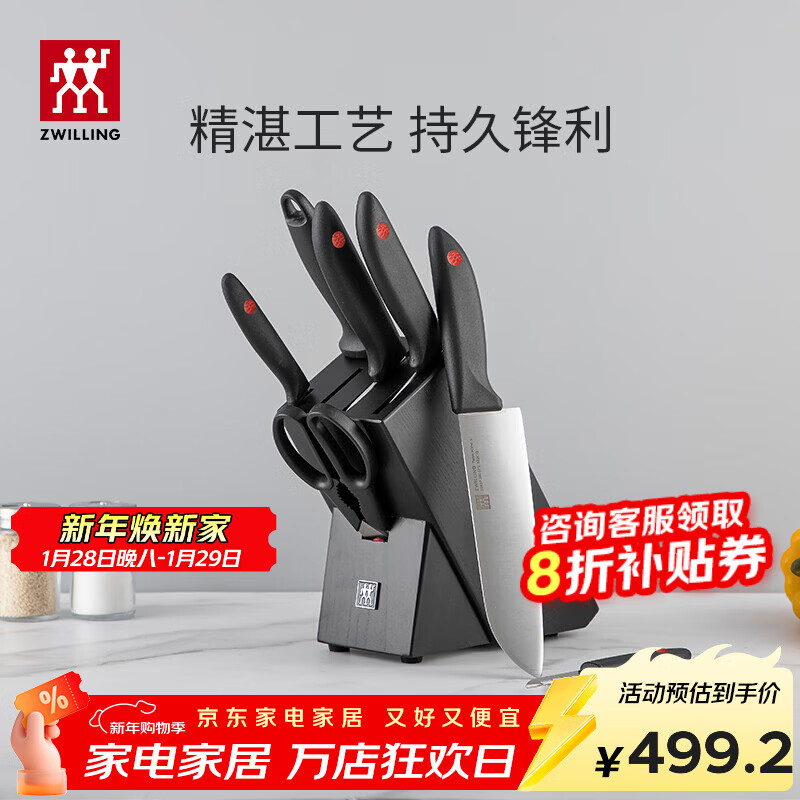 旗舰店双立人(ZWILLING)厨具刀具套装水果刀切菜刀砍骨刀剪刀磨刀棒鸿运当头Point8件套