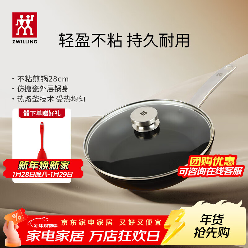 旗舰店双立人(ZWILLING)Enjoy不粘锅平底锅煎锅炒菜锅煎蛋煎饼牛排锅油炸锅少油烟烹饪锅 煎锅+锅盖+硅胶铲 28cm