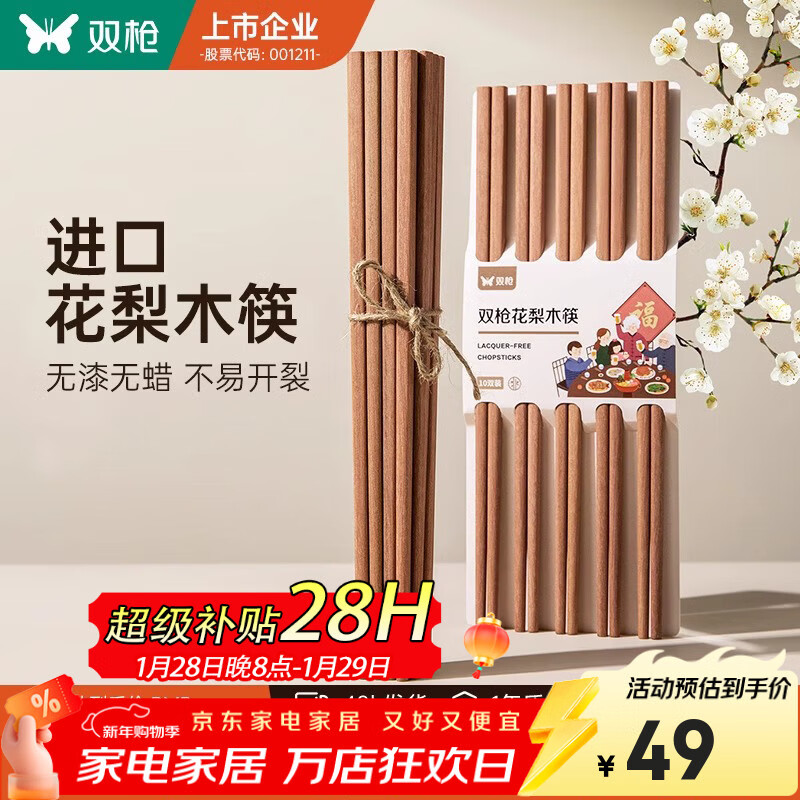 旗舰店双枪非洲进口高档花梨木筷2024新款家用木筷子无漆无蜡原木筷实木筷 【活动款】花梨木筷10双装