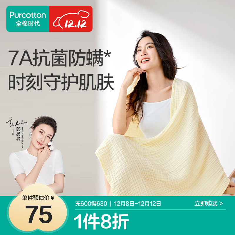 自营全棉时代浴巾纯棉速吸四层一体抗菌防螨水洗纱布浴巾棉花糖-黄80×140cm