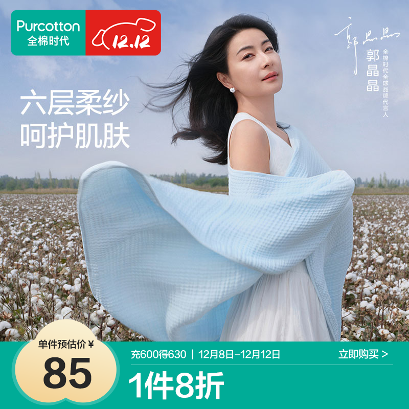 自营全棉时代浴巾纯棉速吸易干六层素色水洗纱布浴巾经典蓝 80cm×140cm