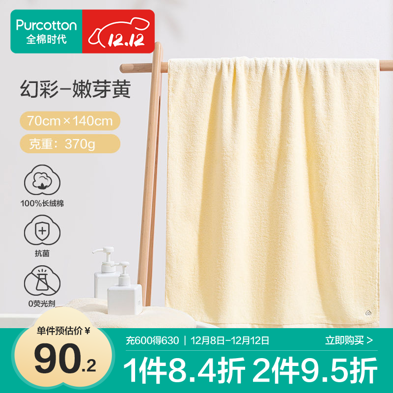 自营全棉时代浴巾100%棉纯棉抗菌加大加厚吸水不掉毛洗澡巾嫩芽黄70*140cm