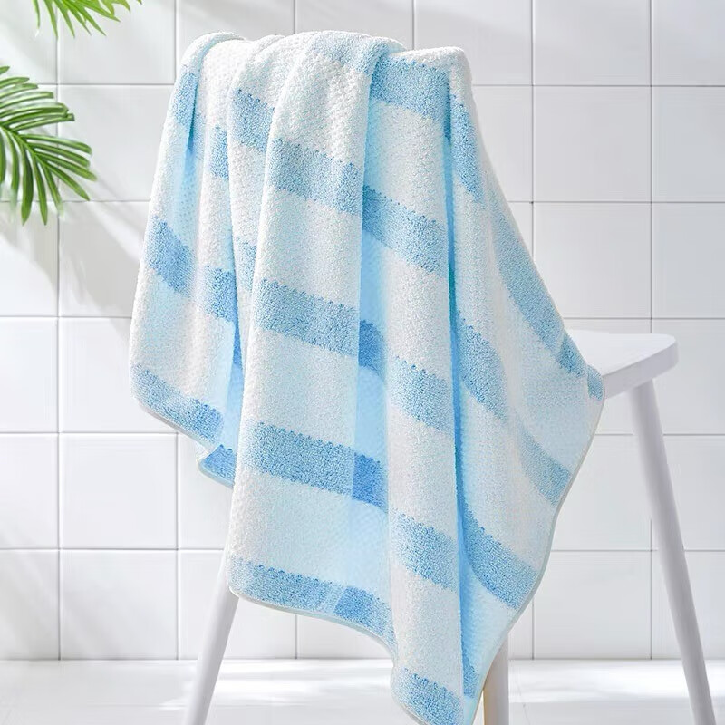 旗舰店三利家用吸水速干成人男女大毛巾加大柔软裹巾条纹简约不掉易毛浴巾 水蓝色 275g