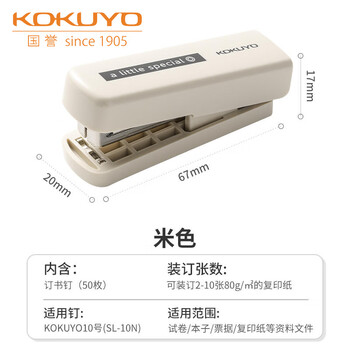 国誉(KOKUYO)一米新纯便携订书机迷你小巧学生随身试卷资料装订工具手动多功能装订器 米色【可订2-10张纸】