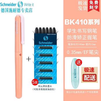 施耐德(Schneider) 德国进口 男女学生用成人练字办公钢笔墨水笔细EF尖BK410(带笔盒) 浅橙钢笔+5盒黑色墨囊
