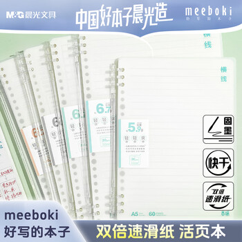 自营晨光(M&G)文具【蒲熠星同款】笔记本本子a5活页本记事本错题本日记本60页本味meeboki横线款HA5502A
