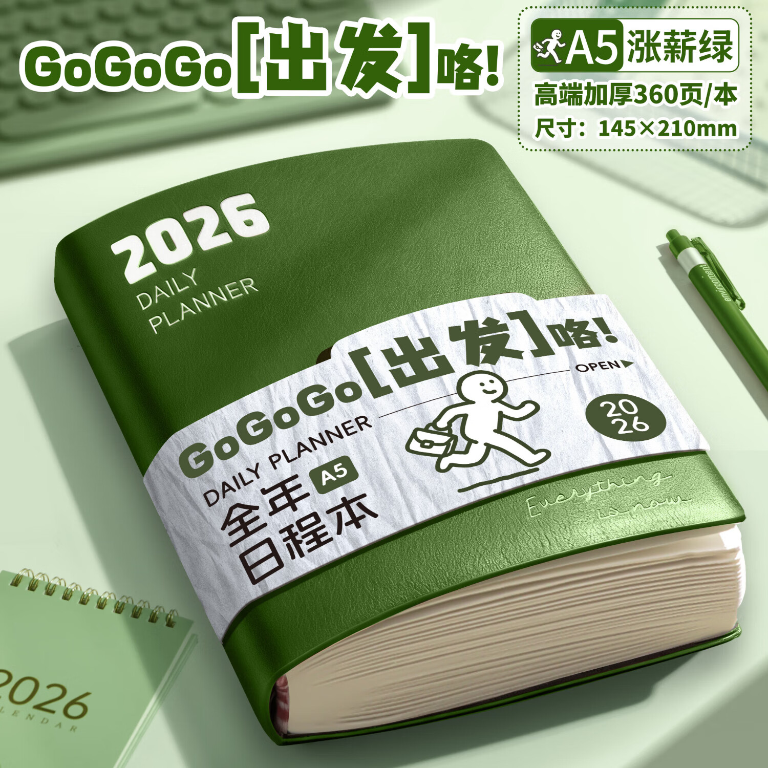 慢作2026年日程本一日一页A5计划本日记本定制商务自律打卡本时间管理365天效率手册表每日办公笔记本 高端加厚款【出发咯!】A5涨薪绿