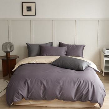 旗舰店兰芮(Lanrui) 100支全棉四件套纯棉床上用品被罩床单枕套亲肤裸睡全棉套件 加文紫 200*230cm四件套(1.5/1.8米床)