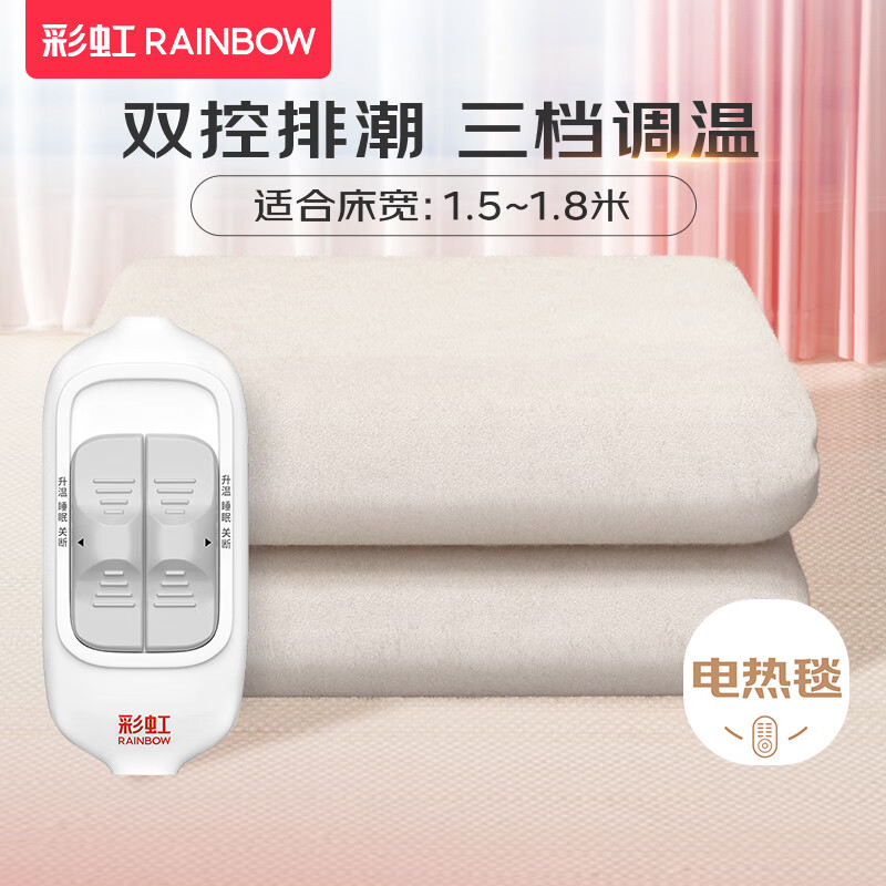 旗舰店彩虹(RAINBOW)电热毯单人电褥子(宽0.7/1.0/1.5米)排潮除湿调温多重安全保护 双温双控排潮烘被 1.8*1.5米 无纺布