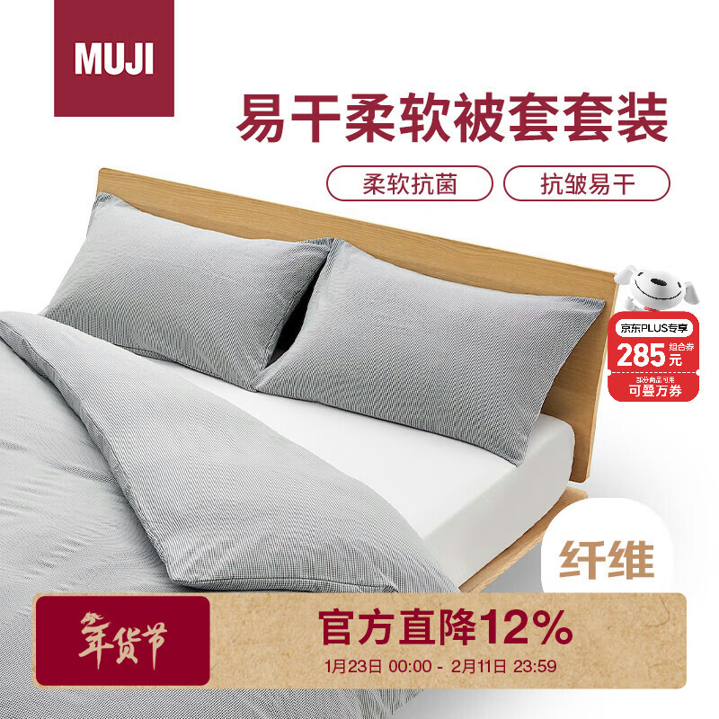 自营MUJI易干柔软被套套装 床上四件套 炭灰色格纹 床垫罩式/双人床用