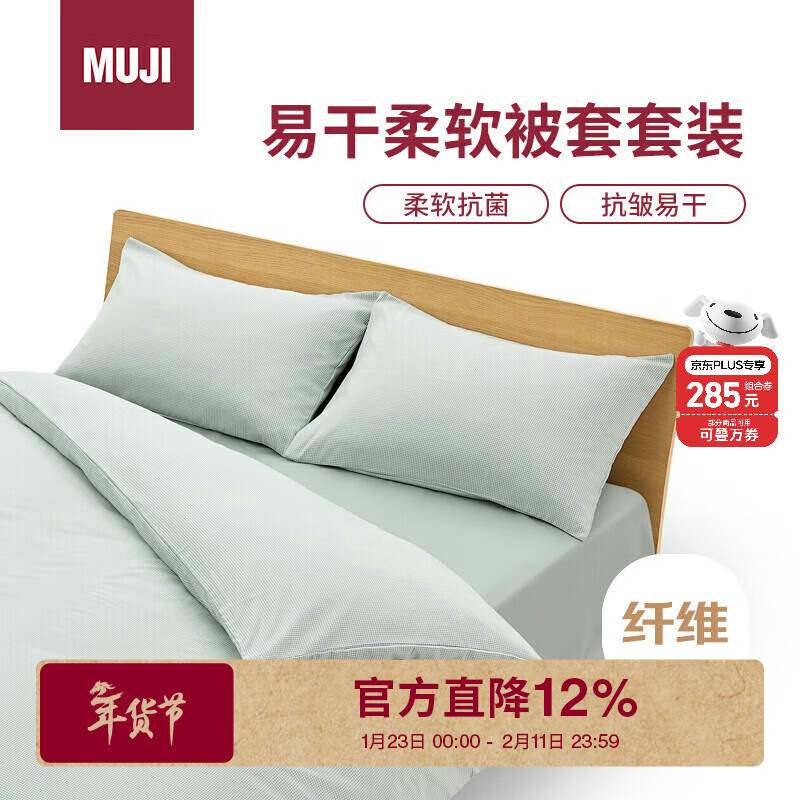 自营MUJI易干柔软被套套装 床上四件套 绿色格纹 床单式/双人床用