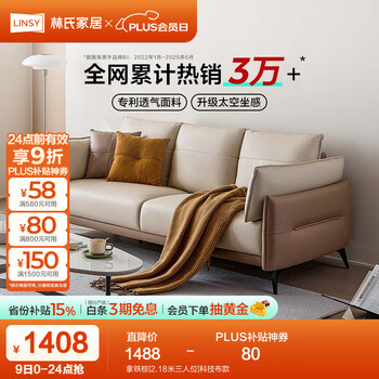 旗舰店林氏家居小户型猫抓布沙发客厅简约现代奶油风2025新款升级沙发BS103 柔纱色|2.18m|安心透气皮