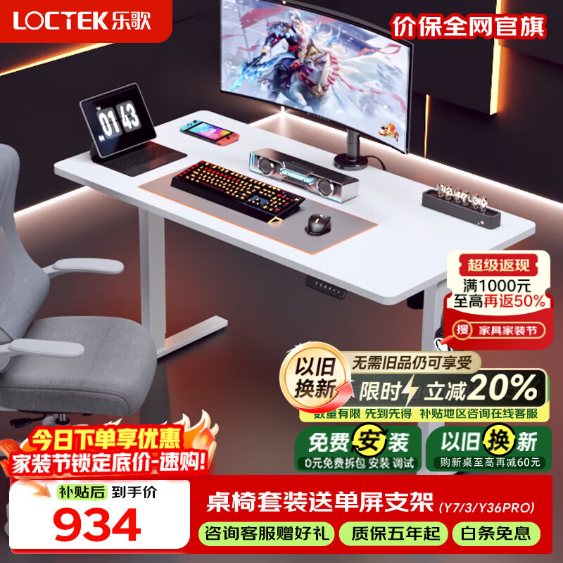 自营乐歌吹雪电竞桌电动升降电脑桌升降书桌白色1.2m
