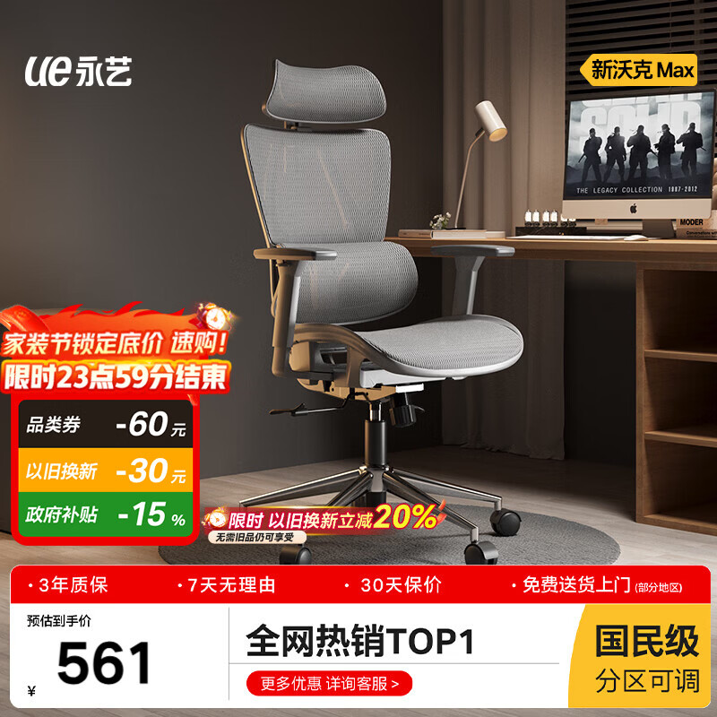 自营永艺新沃克Pro/max 人体工学椅办公椅电脑椅电竞椅家用单人座椅4D腰靠