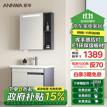 自营ANNWA浴室柜组合感应灯一体盆洗漱台现代简约洗手盆卫生间洗脸池0.7米