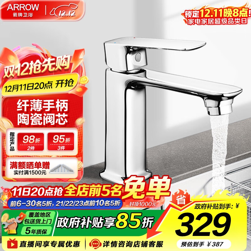 旗舰店箭牌(ARROW)纤薄面盆家用龙头洗手间卫生间黄铜冷热双控水龙头洗手盆 AE4122M银色方形