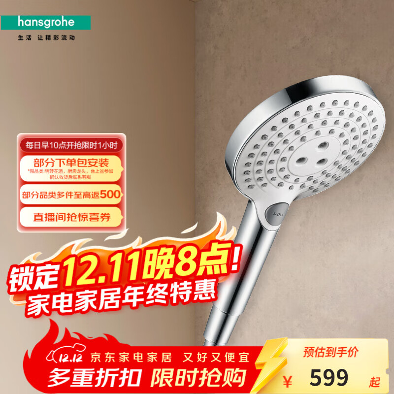 旗舰店汉斯格雅(Hansgrohe)飞雨Select 120 3速冷热手持花洒喷头 节水型 圆头