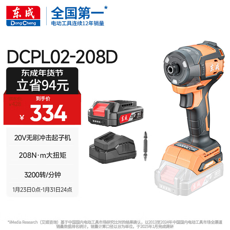 东成20V无刷锂电冲击起子机充电式小手电钻电批电动螺丝刀DCPL02-208D