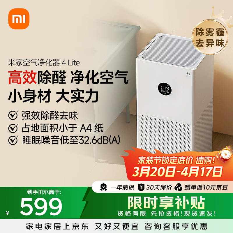 自营米家小米空气净化器4lite 除甲醛除菌除异味 空气伴侣 除PM2.5 AC-M17-SC