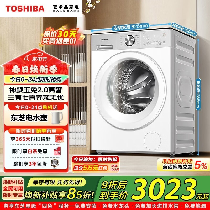 旗舰店东芝(TOSHIBA)玉兔2.0高奢版滚筒洗衣机全自动家用 10KG大容量 AI智能投放 健康除菌螨 专业除毛 滚筒 10kg DG-10T183BW