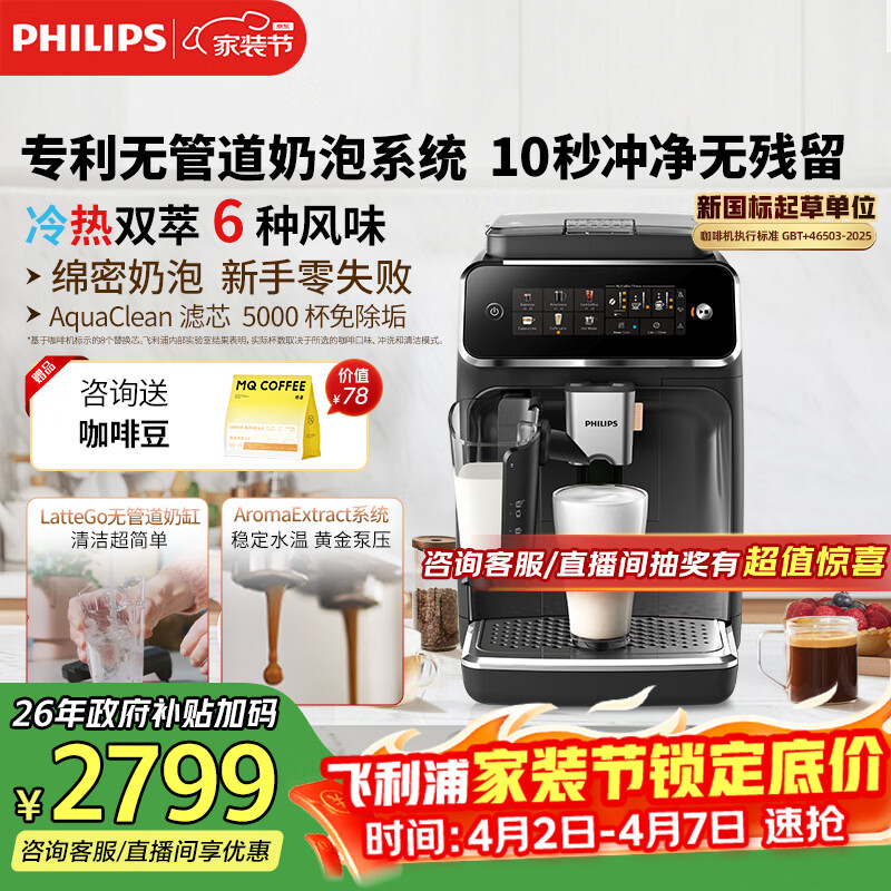 自营飞利浦(PHILIPS)【行业爆款】云朵咖啡机新3系EP3341/82家用/办公室全自动意式浓缩冷萃研磨一体咖啡机 礼物