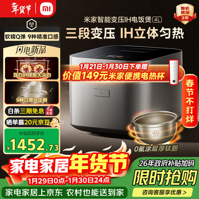 自营米家小米变压电饭煲4L 0氟涂层钛胆 不粘锅 IH加热 三段变压9种口感 14分钟快煮 2.0倍高压 多功能饭锅