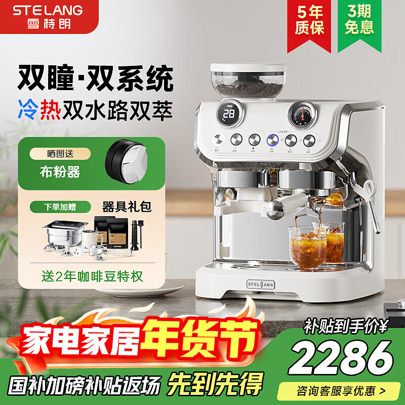 自营雪特朗【新年礼物】517ED双锅炉系统半自动咖啡机家用研磨一体机意式美式咖啡机冷热双萃