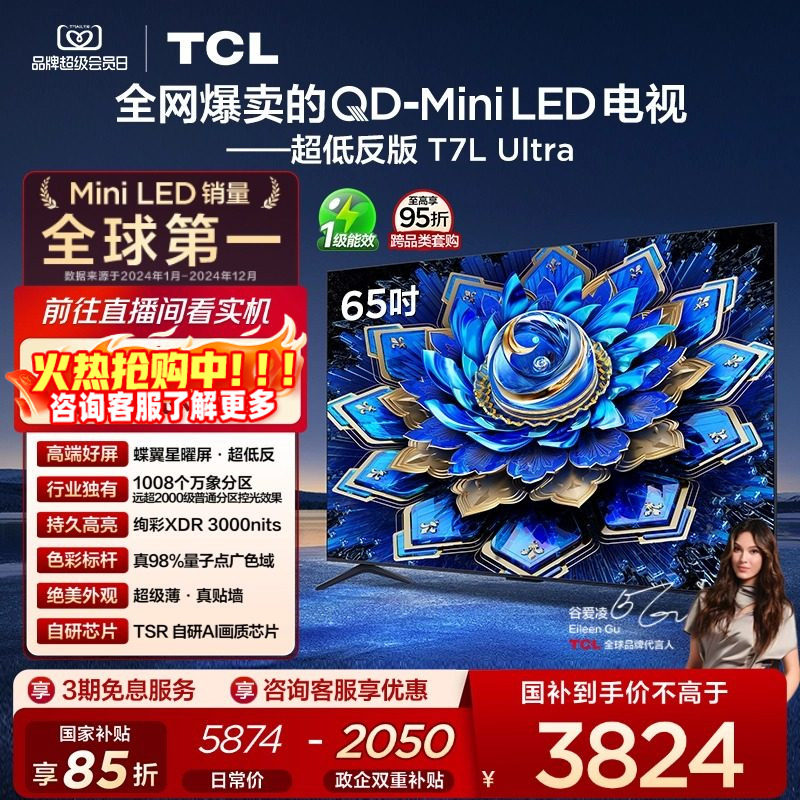 百亿补贴TCL 电视 QD-Mini LED 万象分区华星屏电视机 65/75/85英寸T7