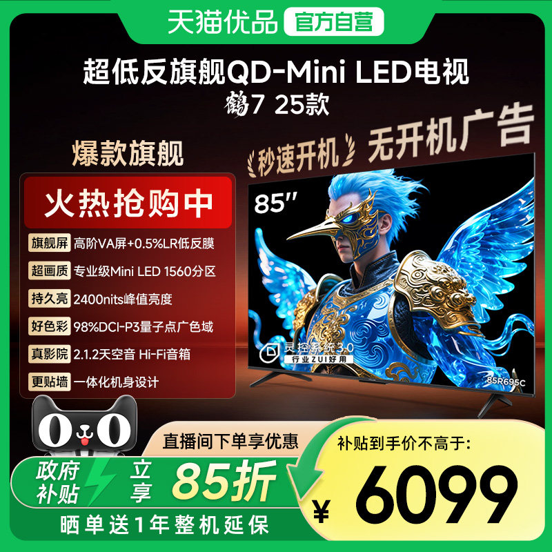 旗舰店雷鸟鹤6 Ultra 25款65英寸QD-MiniLED超低反电视机65S595C Ultra