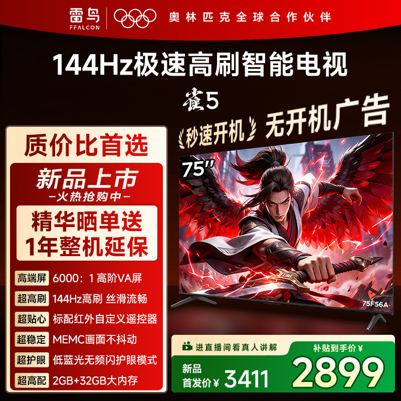 旗舰店雷鸟雀5 75英寸144Hz极速高刷智能MEMC TCL电视机以旧换新补贴85