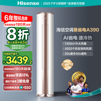 自营海信(Hisense)3匹 易省电A390 AI省电 速冷热 新一级智能自清洁国家补贴20%客厅立式空调柜机KFR-72LW/A390-X1