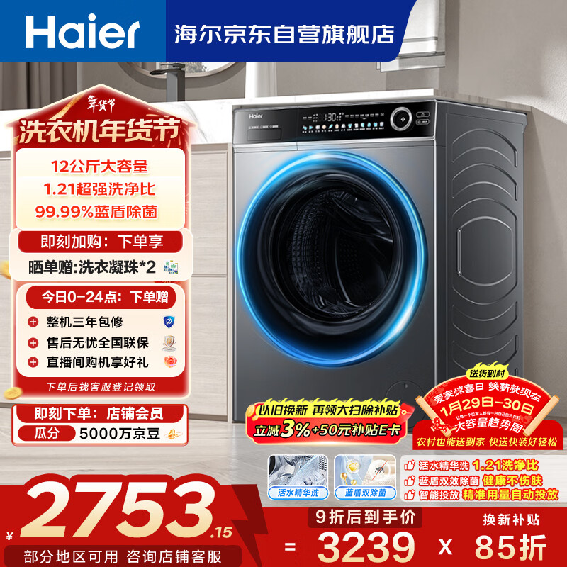 自营海尔(Haier)内衣滚筒洗衣机单洗全自动家用 12公斤大容量超薄 家电国家补贴 京东自营659H 一级能效 以旧换新