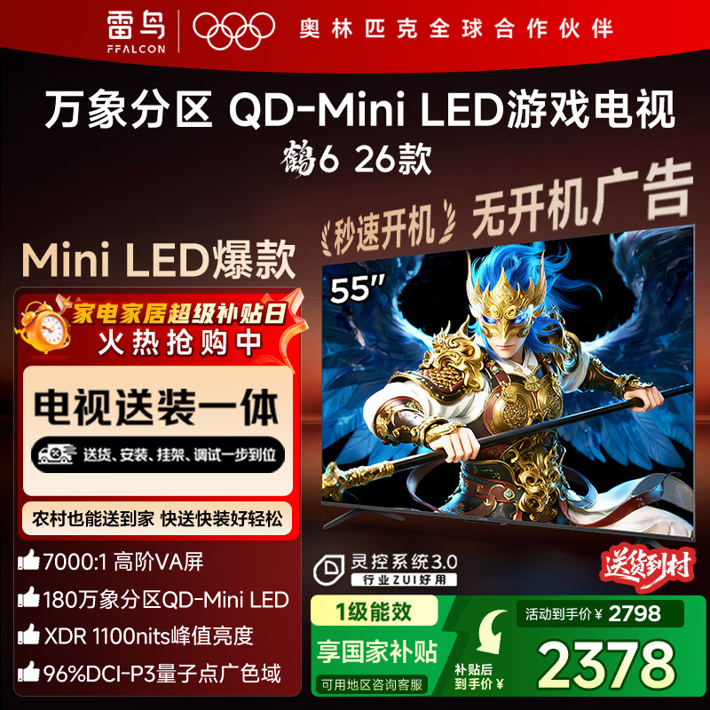 自营FFALCON雷鸟电视【固定挂架送装一体】鹤6 26款 55英寸 万象分区QD-MiniLED1100nits 安桥音响55R69A