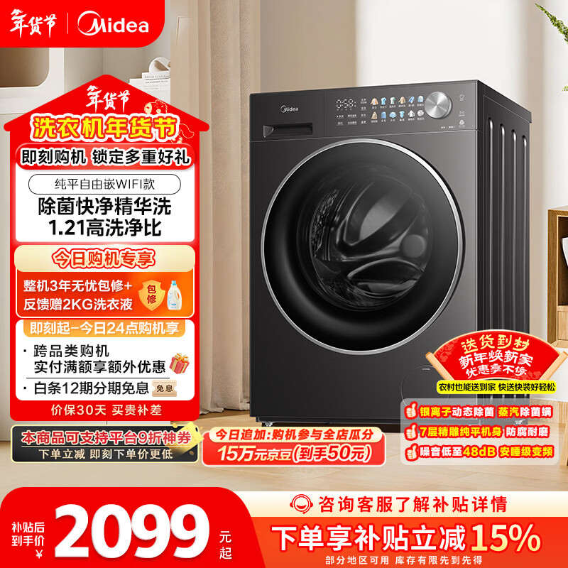 自营美的(Midea)纯平自由嵌 滚筒洗衣机全自动 10公斤 1.21高洗净比 精华洗 WIFI MG10L01T 以旧换新 国家补贴