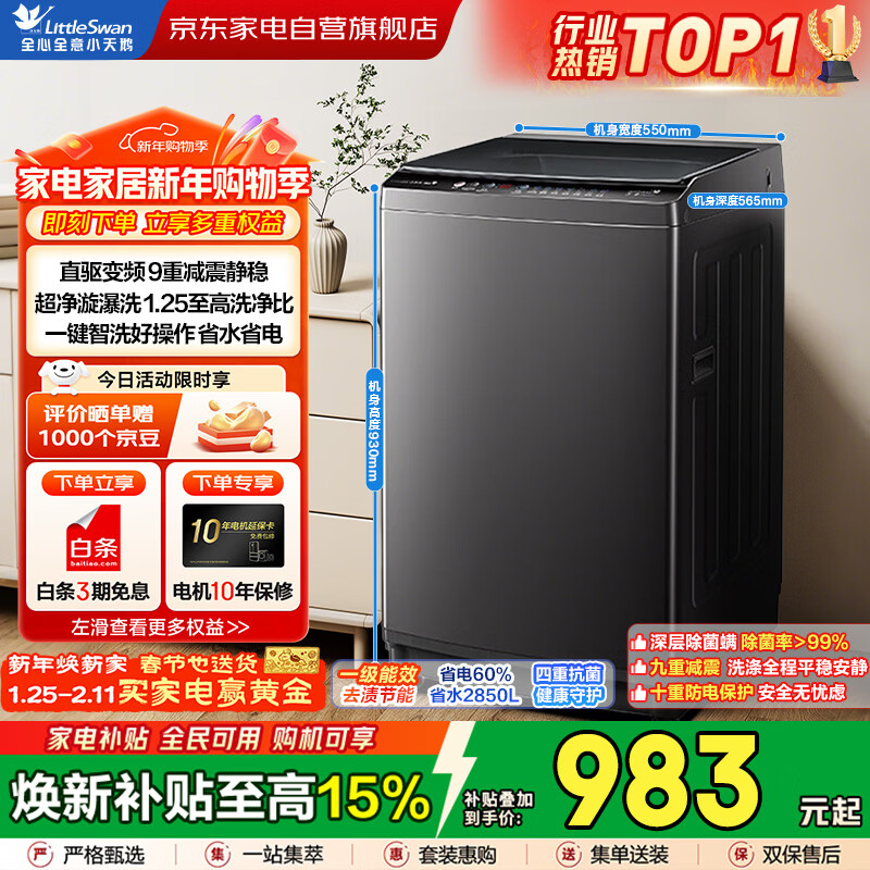 自营小天鹅(LittleSwan)小乌梅轻奢版 波轮洗衣机全自动家用 10KG 水魔方防缠绕 TB10VE20D 以旧换新 国家补贴 京东自营