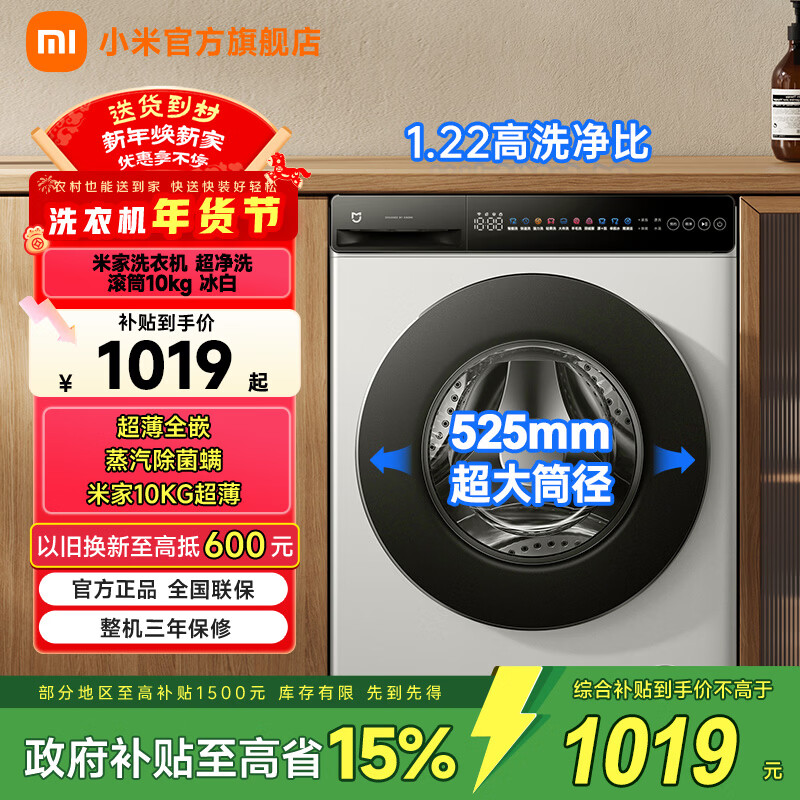旗舰店小米(MI)米家 10公斤超净洗直驱全自动滚筒洗衣机 超大筒径 全嵌机身 1.22洗净比 深层除螨
