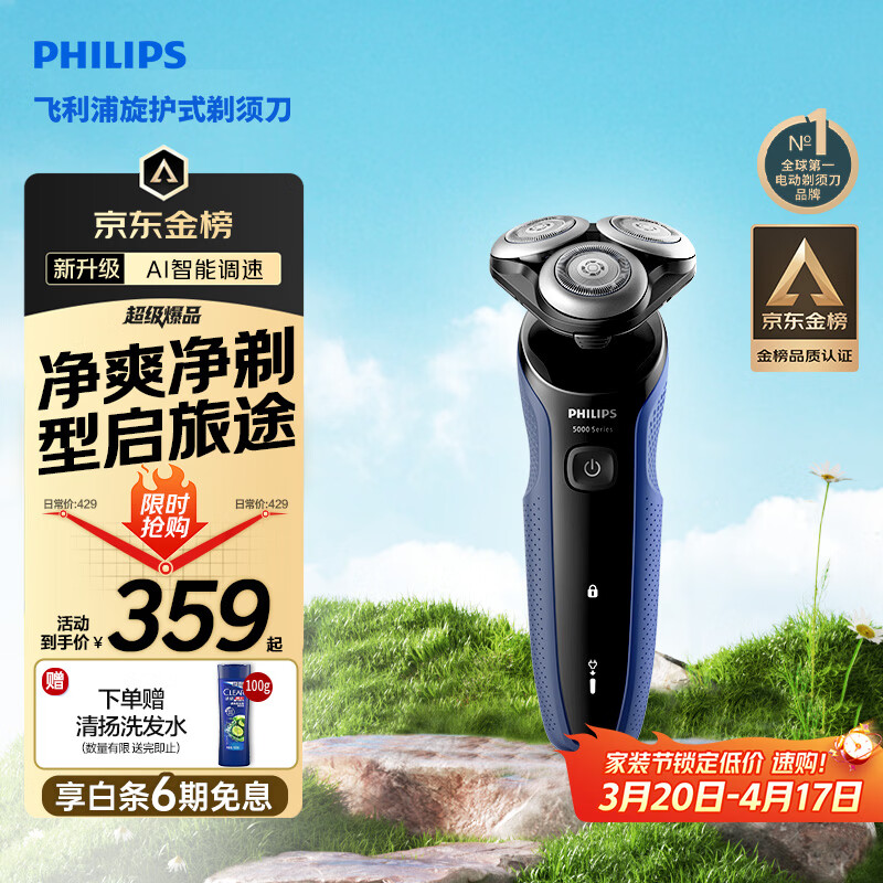自营飞利浦电动剃须刀经典5系Pro京东金榜剃须刀 清爽净剃AI智能刮胡刀 生日礼物送男生老公父亲