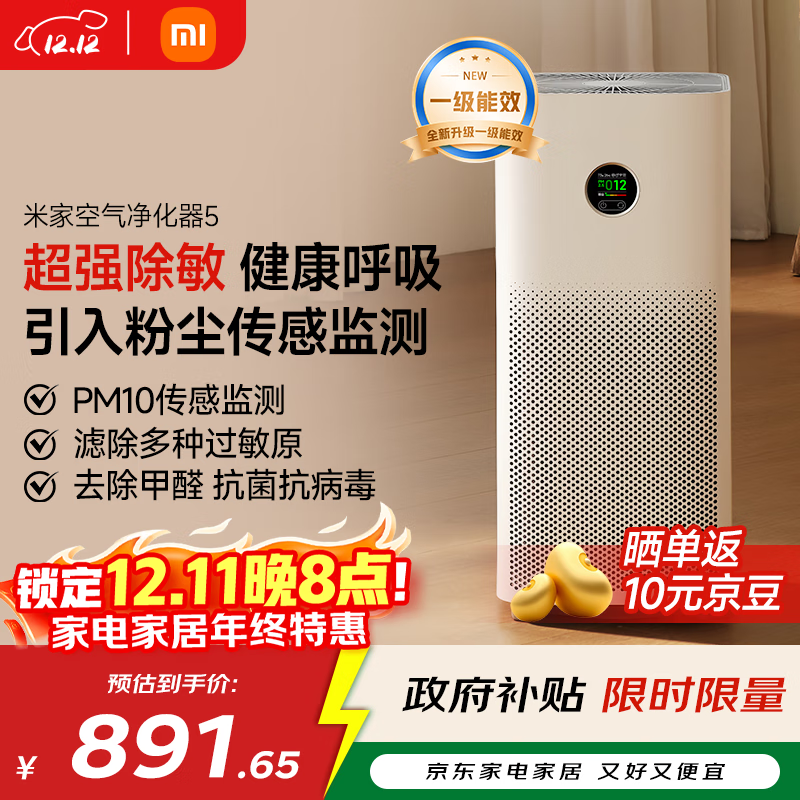 自营米家【家电国家补贴】小米空气净化器5Pro 家用除甲醛除菌除过敏原