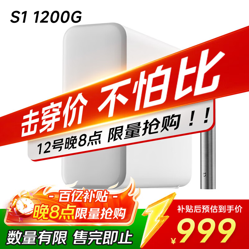 自营米家【10周年新品】小米净水器S1 1200G家用大通量5年长效RO反渗透过滤直饮净饮一体净水机 MR1272-A